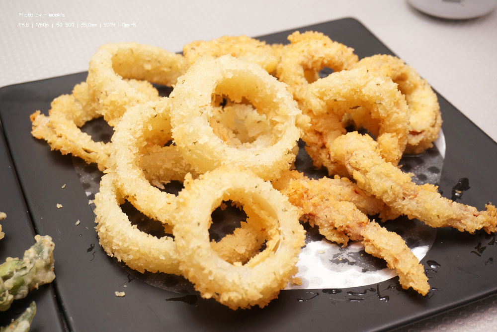 전통 강자 어니언링과 이번에 처음 해 본 오징어 튀김!
