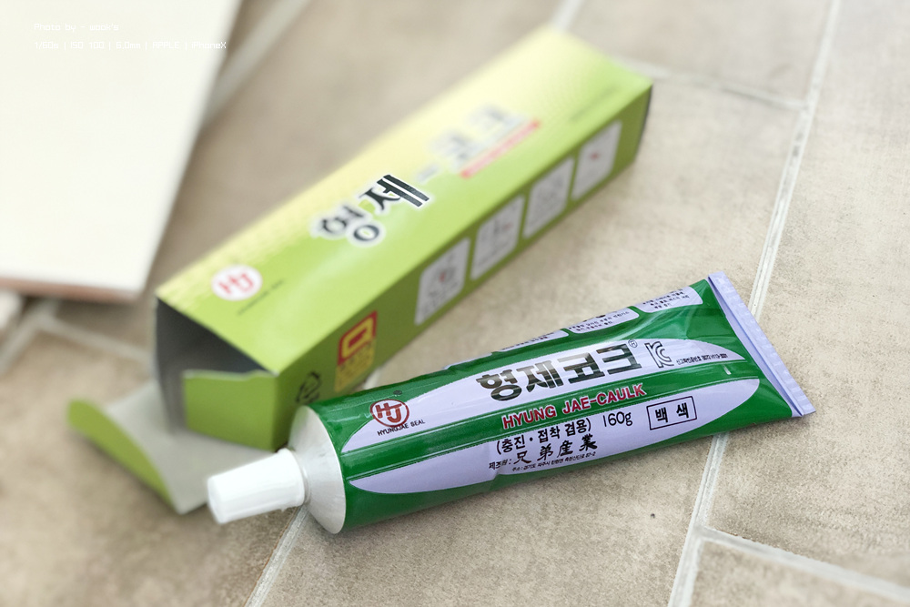 작은 타일의 접착이나 보수에 사용하는 녀석이라 화장실 큰 타일 같은건 무리에요.