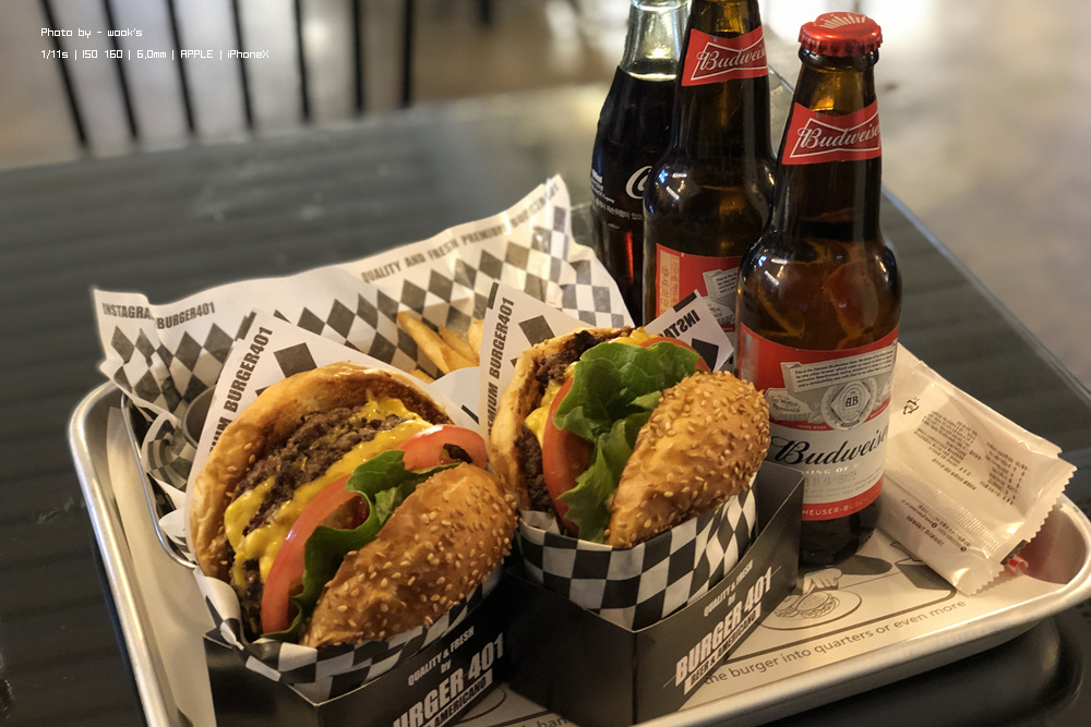 맥주에 더블패티 치즈버거!
