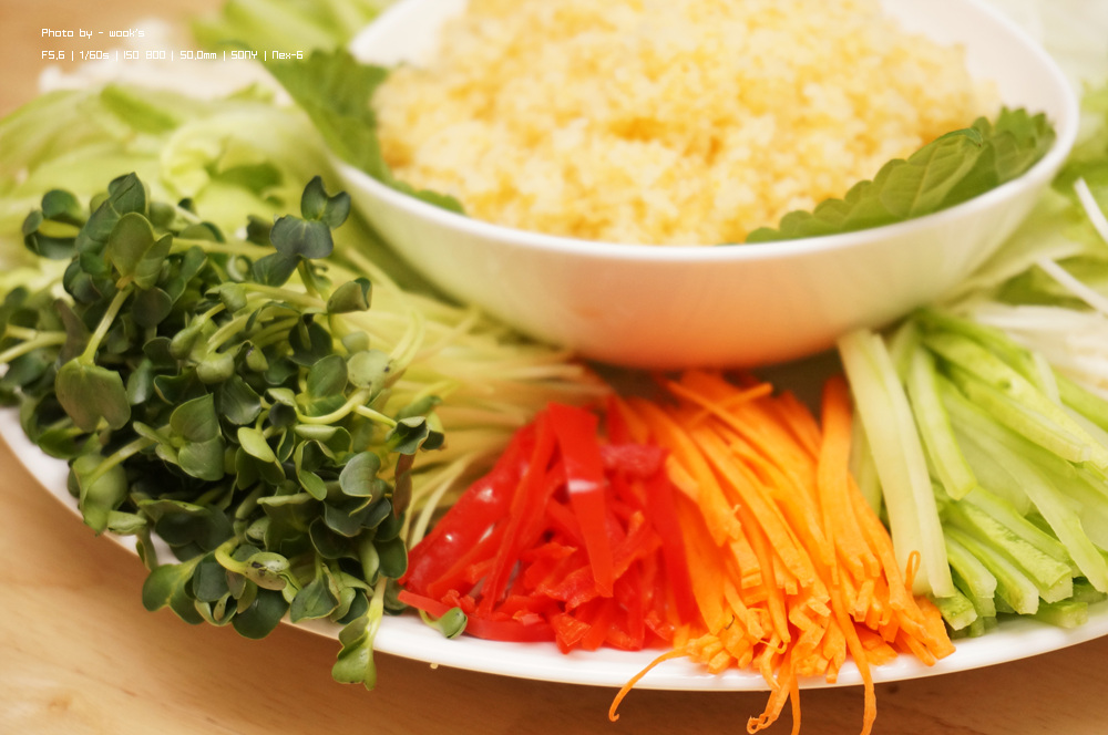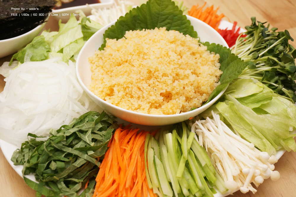개인적으로 추천하는건 깻잎, 오이, 무순 정도가 잘 어울립니다.