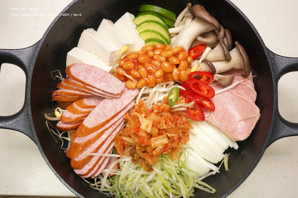 기본적으로 스팸, 후랑크햄, 두부, 옥수수, 파, 버섯, 호박 정도 준비해주고..