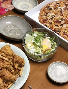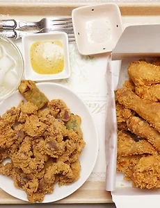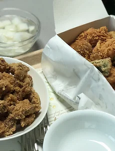 후라이드11 썬더치킨 후라이드+똥집튀김 조합! 언제 먹어도 맛있는 그 조합!!!! 역시 치킨은 후라이드. 2019. 7. 21. 칠칠켄터키 & 파파존스 장인어른이 피자를 좋아하셔서.. 한번씩 함께 먹곤 합니다. 이번엔 치킨&피자!!! 치킨은 77켄터키에서 후라이드. 맛있습니다. ^^ 피자는 요즘 즐겨하는 파파존스입니다. 배달되는게 햄뽁- 패밀리 사이즈부터 씬이 가능해서 좀 아쉬운데.. 그냥 씬 시켜 먹고, 남으면 냉동보관하는게 나은 듯 합니다. 요새 그렇게 먹네요. ㅎㅎ 2019. 6. 5. 썬더치킨 후라이드 & 똥집튀김 바삭~한 후라이드와 똥집이 땡길때면 찾게되는.. 썬더치킨입니다. 오늘도 역시 후라이드&똥집튀김 콤보. 하앍-정말 맛있어 보이네요. 바삭한 똥집튀김. 전 왜 이걸 모르고 살아왔을까요? ㅜ_ㅜ 넘흐 맛있는거슬!!! 그리고 크리스피 치킨. 언제 먹어도 맛있는 기본중의 기본이죠. ㅎㅎ 요새 팟캐스트 그알싫의 대한민국 치킨전 듣고 있는데, 치킨이 더 땡겨요 ㅋㅋㅋ 2019. 2. 14. 60계치킨 후라이드+장스 반반! [▣ in my life../┗ 버섯메뉴판] - 새 기름으로 60마리만! 60계 치킨 이번엔 순살로 주문해봤습니다. 후라이드+장스치킨 조합. 오늘은 깜빡하고 양파를 안 썰었네요. 그래도 맛있습니다. 서비스로 웨지감자도 왔어요~ ^^ 전에 먹어본 것처럼.. 순살도 여전히 시장표 후라이드의 그 느낌이 납니다. 근데 확실히 맛은 뼈있는 치킨이 맛있네요. 후라이드 순살은 조금 아쉬웠어요. 그리고 매콤한거 좋아하는 햄이를 위해 장스치킨. 햄이도 좋아하고, 살짝 매운 맛이라서 저도 먹을 수 있어서 좋았어요. 정말 매운건 6초치킨이라고 하던데.. 그건 먹어볼 일이 없을듯..;; 2018. 11. 23. 새 기름으로 60마리만! 60계 치킨 새 기름으로 60마리만 튀긴다! 라는 슬로건으로 유명한, 60계 치킨입니다. 동네에 매장이 하나 있길래 주문해 봤어요. 반반 조합입니다. 원래 순살 시키려다가 실수로 그냥 반반을 시켰네요. 후라이드 + 간지치킨 조합입니다. 요새 치킨을 먹는 새로운 조합을 만들었는데, 양파 슬라이스와 샤워크림 소스를 함께 먹습니다. 주로 연어 먹을때 많이 먹는 조합인데, 요새는 어니언 치킨도 많잖아요? 그래서 괜찮을 것 같아서 한번 도전! 근데 진심으로 이 조합 추천합니다. 먹다보면 느끼하거나 물릴 수 있는 치킨의 맛을 딱 잡아줍니다. 한마리 뚝딱! 할 수 있어요! 후라이드 치킨. 약간 옛날 통닭 느낌이 나는 튀김 형태인데, 77켄터키 생각도 나고, 정말 60마리만 튀기는지 깔끔한 맛도 있으면서 바삭하니 맛있습니다. 이쪽.. 2018. 10. 19. 칠칠켄터키는 후라이드+깐풍 조합! 복날 기념으로 먹었던 치킨입니다. 시원하게 샤워 후에 먹고 싶어서 칠칠켄터키에 주문했습니다. 칠칠켄터키 추천 조합 중 하나인 후라이드+깐풍치킨 입니다. 칠칠에서는 후라이드, 깐풍, 간장 등을 추천하는 편인데.. (개인적으로) 그 중 저 조합을 가장 많이 먹는것 같아요. 후라이드 순살. 갈수록 뼈 발라 먹는게 귀찮아지더라구요. 그래서 맛은 조금 떨어진다해도 보통 순살을 즐겨 먹습니다. 칠칠켄터키의 마스코트 같은 감자튀김까지! 깐풍 치킨입니다. 요게 묘하게 맛있어요. ㅎㅎ 일반 양념에 질렸으면 한번 드셔보세요. 그리고 시원한 맥주 한잔이 곁들여지면 금상첨화! 치맥은 언제나 진리니까요. 2018. 8. 4. 이전 1 2 다음