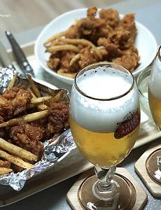 후라이드11 부부의 날 기념 치킨 얼마전 부부의 날에 먹은 치맥! 칠칠켄터키에서 사온 후라이드&간장 치킨과 함께 했습니다. 외식할까 하다가 집에서 먹었는데 좋았네요. ^^ 2018. 5. 31. 크리스피 치킨 & 닭똥집튀김 콤보 크리스피 치킨과 닭똥집 튀김 콤보입니다. 닭모래집이 맞지만.. 역시 닭똥집이 입에 촥촥 붙어요. -ㅂ-; 양이 많아서 잘 못먹는데, 오랜만에 한번 도전해 봤습니다. 크리스피 치킨은 언제 먹어도 맛있습니다. 후라이드 치킨은 진리죠. 진리. 닭똥집 튀김. 이게 남부에서 유명한가봐요. 처음 알게된것도 대구 출신 모님 덕. 지금은 저도 아주 좋아합니다. ㅋ 2018. 2. 24. 칠칠켄터키 후라이드+깐풍켄터키 치킨 집 근처에 칠칠켄터키가 생겼습니다. 예전에 한번 가보려다가 사람이 많아 실패한 경험이 있는데.. 가까운 곳에 들어서니 좋네요. 집 근처에 뭔가 하나씩 들어오는 것이 참 좋네요. ^^ 반반으로 주문해 봤습니다. 오늘의 선택은 후라이드+깐풍켄터키. 순살로 선택했습니다. ^^ 기본 안주가 나오구요 칠칠켄터키는 특이하게 팝콘이 나오네요. 아우~ 치느님 오셨네요! 양이 둘이 먹기엔 많습니다. ㄷㄷㄷ 맛은 좋네요. 후라이드, 깐풍 둘 다 맛있었습니다. 잘 선택한 것 같아요. ^^ 남는건 포장~* 2017. 8. 12. 동네에 썬더치킨 등장! 지난주 1주 2치킨을 하게 만든 주범. 썬더치킨입니다. 얼마전에 매장이 생겼길래 한번 사먹어 봤는데.. 아~ 여기 좋더라구요. ㅎㅎ 후라이드 치킨은 딱 떨어지는 매장이 없었는데.. 간만에 마음에 드는 곳이 생겨서 좋습니다. 아.. 또 먹고 싶네.. =ㅠ= 2016. 10. 26. BBQ 순살치킨 오래전에 시켜먹었던 BBQ 순살치킨입니다. 순살이라기보단 거의 너겟 느낌이네요. -ㅂ- 맛은 괜찮았는데.. 또 찾게 될 것 같진 않은..특징 없는 맛이었어요. ㅎㅎ 오늘 한중전 축구가 있으니.. 치킨 한마리 뜯어야죠? 2016. 9. 1. 이전 1 2 다음
